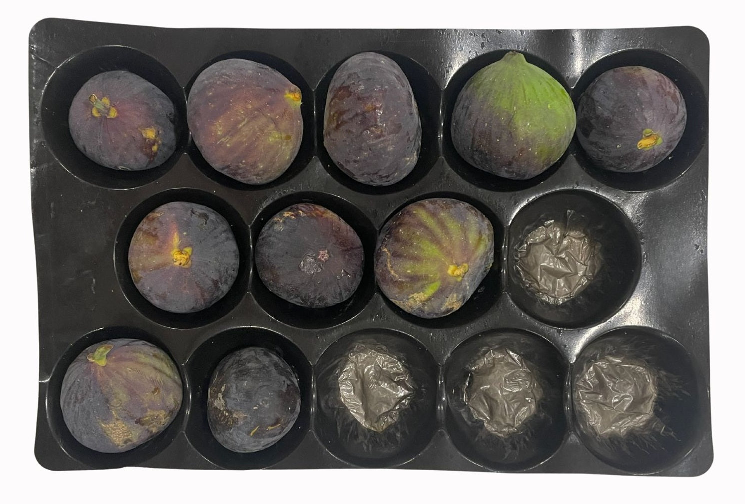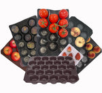 Ultra-biodegradable, antimicrobial fruit trays for fresh produce, available for tomatoes, strawberries, plums, peaches, and apples.